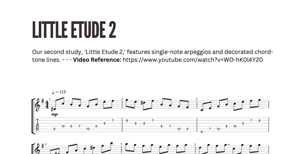 Our second study, ‘Little Etude 2’ features single-note arpeggios and decorated chord tones